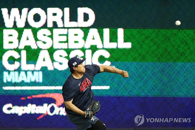 (마이애미=연합뉴스) 김경윤 기자 = 오랜 세월 한국 야구의 대표 선수로 활약해온 류현진(한화 이글스)이 14일 오전 7시 30분 미국 플로리다주 마이애미 론디포파크에서 열리는 2026 월드베이스볼클래식(WBC) 도미니카공화국과 8강전을 끝으로 태극마크를 반납할 것으로 보인다.
